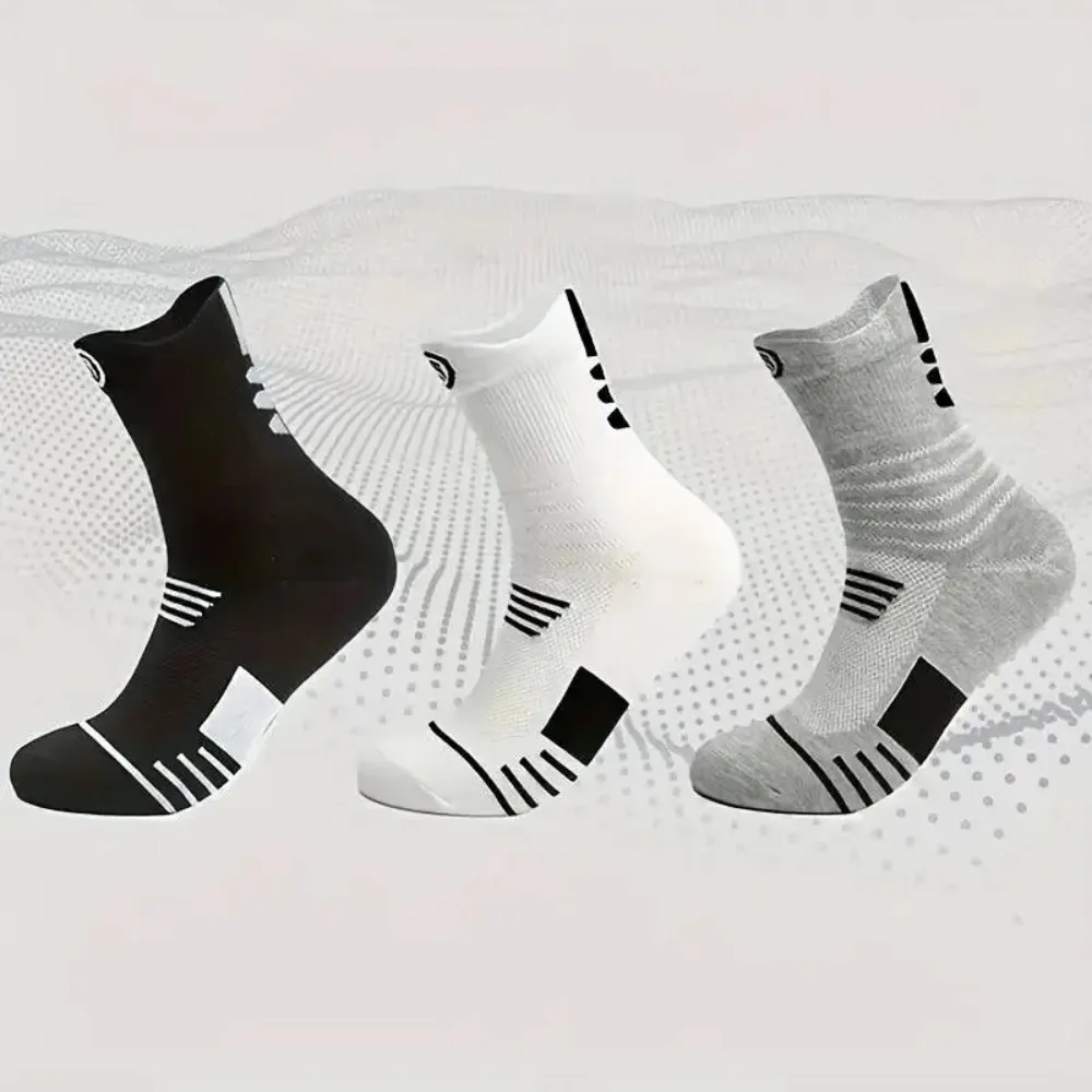 3 Pairs Men's Comfort Fit Cushion Performance Athletic Crew Socks For Outdoor Sports